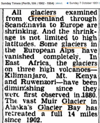 07 Oct 1951 – Glaciers, Icebergs melt as world gets warmer By …